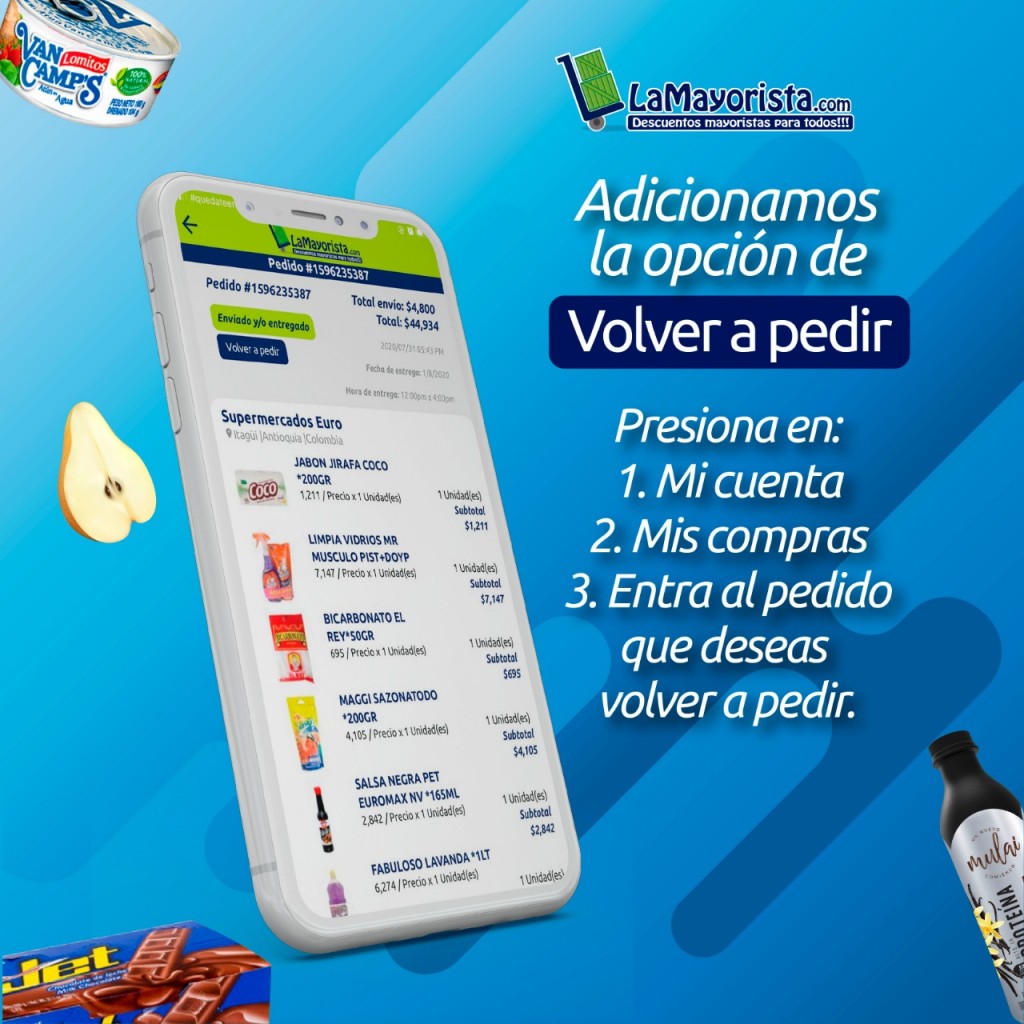 Por lo anterior es que hoy presentamos una nueva versión de La Mayorista APP donde, ofrecemos un nuevo botón que permite agregar con un sólo clic los productos de un carrito o compra anterior!