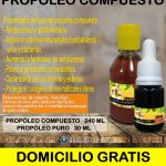 El propóleo es una sustancia elaborada por las abejas, es una mezcla compleja de resinas, ceras, aceites esenciales, polen y micro elementos de consistencia viscosa que entre sus principales propiedades es ser anti bacteriano y anti viral, Lo tenemos en dos presentaciones Propóelo Compuesto y extracto de Propoleo Puro. Unidad de venta de 240 ml y de 30 ml ($15.400 y $12.500).